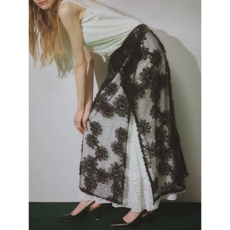 立体感のあるフラワー刺繍が印象的なチュールラップスカート。