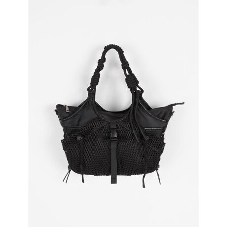 編み目の異なる多層メッシュから形成されるポケットや、コードハンドルがデザインのポイント。