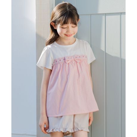 ■デザインTシャツとリボンビスチェをレイヤードしたようなドッキングチュニックです。