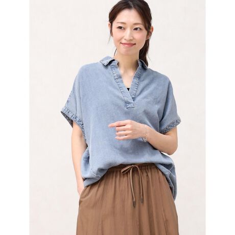 ・サラッとしたドライタッチに、柔らかな光沢感が上品な印象を出しているテンセルデニムを使ったブラウス。