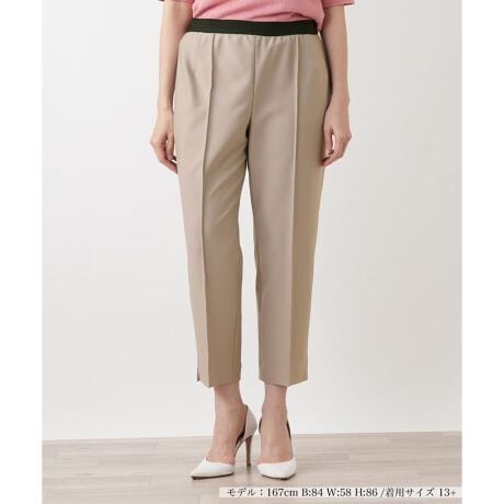 すっきりとした足元を演出し、軽快な印象を与えるクロップドパンツ。初夏から夏にかけての季節にふさわしい、洗練された大人のカジュアルスタイルを叶えます。ウエストはゴム仕様になっており、着脱がしやすいだけでなく、長時間の着用でも快適な着心地を保ちます。伸縮性に優れたストレッチ素材を使用しているため、立ち座りや歩行などの日常の動作もスムーズ。ご旅行やアクティブに過ごしたい休日にも最適です。無地のシンプルなデザインは、トップスを選ばず幅広いコーディネートに着回せるのが魅力。ブラウスと合わせてきれいめに、カットソーと合わせてリラックス感のある装いにと、様々な表情をお楽しみいただけます。ご自宅でお手入れしやすいイージーケア性も備えた、頼れる一着です。