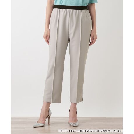 すっきりとした足元を演出し、軽快な印象を与えるクロップドパンツ。初夏から夏にかけての季節にふさわしい、洗練された大人のカジュアルスタイルを叶えます。ウエストはゴム仕様になっており、着脱がしやすいだけでなく、長時間の着用でも快適な着心地を保ちます。伸縮性に優れたストレッチ素材を使用しているため、立ち座りや歩行などの日常の動作もスムーズ。ご旅行やアクティブに過ごしたい休日にも最適です。無地のシンプルなデザインは、トップスを選ばず幅広いコーディネートに着回せるのが魅力。ブラウスと合わせてきれいめに、カットソーと合わせてリラックス感のある装いにと、様々な表情をお楽しみいただけます。ご自宅でお手入れしやすいイージーケア性も備えた、頼れる一着です。