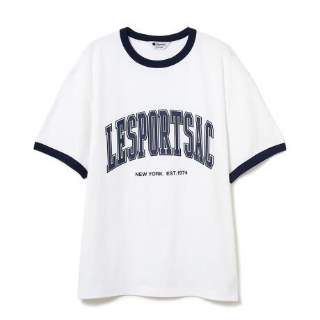 首元や袖口の配色をアクセントに、ロゴプリントをあしらったTシャツ。