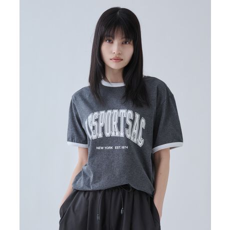 首元や袖口の配色をアクセントに、ロゴプリントをあしらったTシャツ。