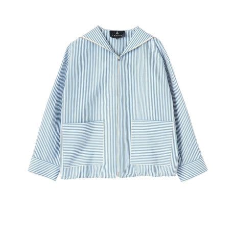 セーラーカラーのディテールを、素材が持つ上品な光沢と立体感で昇華したアウター。ラインを排し素材の美しさを主役に、リネン特有のハリが襟を華やかに立ち上げます。ファスナー開きやパッチポケットはブルゾンのような洗練されたカジュアルさを加え、品格あるマリンスタイルを表現します。