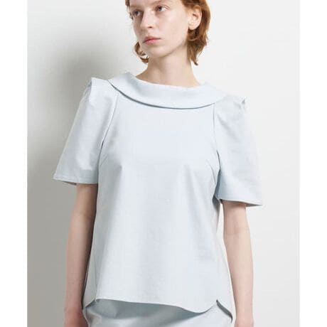 首周りを美しく見せるため、襟の高さや幅に綿密にこだわったロールカラーデザインと、後ろにかけて少し下がった衿ぐりが、後ろ姿も首を長くすっきりと見せてくれます。肩の構築的なタックが肩周りをコンパクトに整え、サイドのカーブスリットが腰回りをさりげなくカバーしスタイルをきれいに演出できるアイテムです。