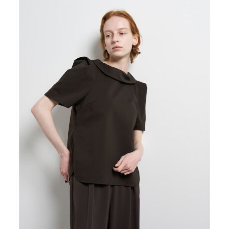 首周りを美しく見せるため、襟の高さや幅に綿密にこだわったロールカラーデザインと、後ろにかけて少し下がった衿ぐりが、後ろ姿も首を長くすっきりと見せてくれます。肩の構築的なタックが肩周りをコンパクトに整え、サイドのカーブスリットが腰回りをさりげなくカバーしスタイルをきれいに演出できるアイテムです。