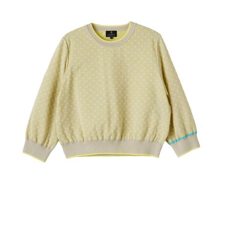 シャリ感のある清涼な素材が心地よいニット。肌離れの良い糸の特性により、夏場も快適な着心地でストレスフリーに過ごせます。印象的なドット柄を配し、ブランドロゴや配色切り替えなど、細部にまでこだわり抜いたデザインが目を惹きます。