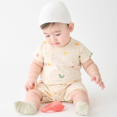 扱いやすいスナップボタンの前あき仕様でお着替えもラクラク。