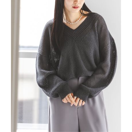 今シーズンは女性らしくデコルテが見える太リブのV開きが印象的でラフな抜け感が魅力の1枚に。