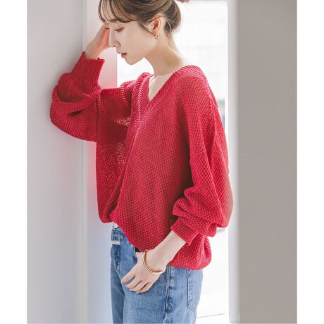 今シーズンは女性らしくデコルテが見える太リブのV開きが印象的でラフな抜け感が魅力の1枚に。