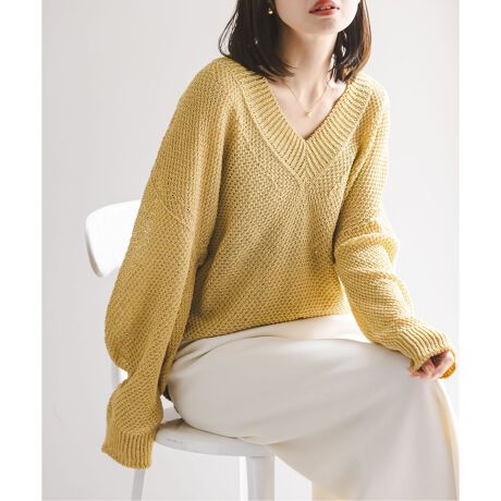 今シーズンは女性らしくデコルテが見える太リブのV開きが印象的でラフな抜け感が魅力の1枚に。