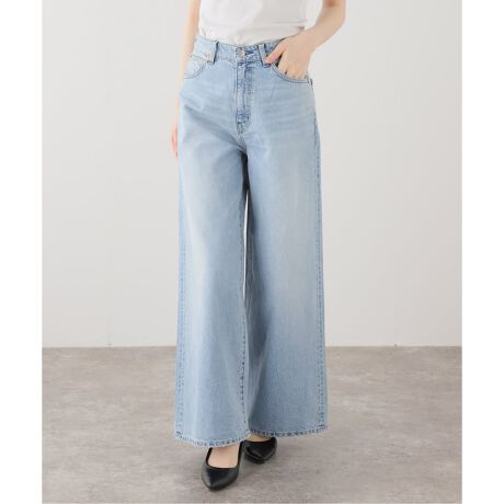 ハイウエスト設定とワイドストレートシルエットが特徴のデニムパンツ。