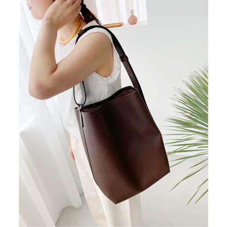 シンプルで合わせるものを選ばないショルダートートバッグは、マチがたっぷりとあり、A4もしっかり入る大容量サイズ。
