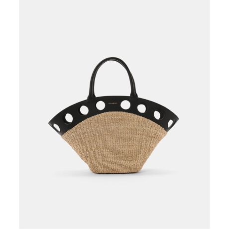 舟形のアバカボディにレザー使いがポイントになったトートバッグ。