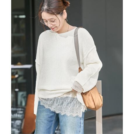少しオーバーサイズでやや広めなボートネックの開きがニュアンス感を演出。