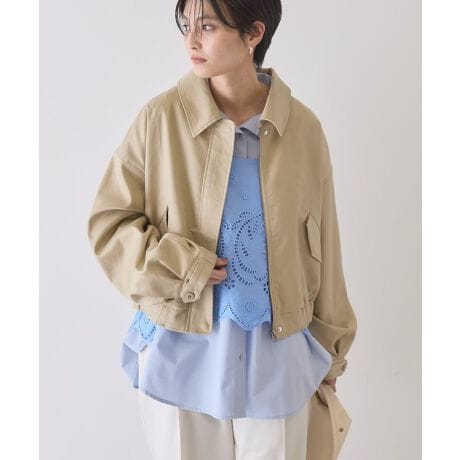 カジュアルながらも襟付きで上品さをプラスしたショート丈ブルゾン。ゆったりとした身幅とドロップショルダーで程よいボリューム感がありつつ、短めの丈でバランスが取りやすいシルエットです。ほのかな光沢のある軽やかなツイル素材を使用しており、羽織るだけで高見えします。ハイウエストのボトムと合わせれば、脚長効果のあるスタイルアップコーデに仕上がります。※モデル着用画像は、光の当たり具合で色味が違って見える場合がございます。※お使いのモニター環境によって商品の色味が違って見える場合がございます。