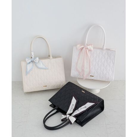 スカーフ付き2ルームリボンキルティングトート