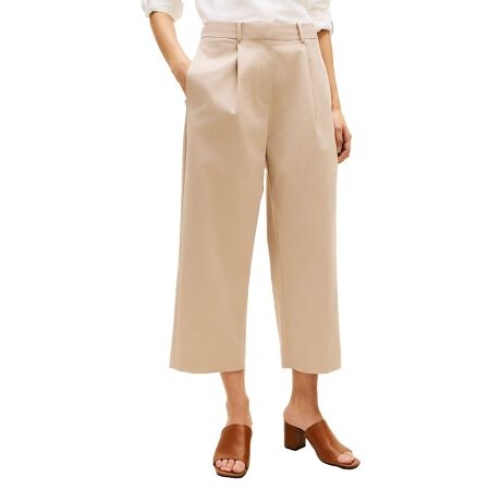 柔らかくハリのあるリヨセルコットンを使用したバレルレッグプリーツパンツ。ハイライズでウエストからヒップは程よくきれいにフィットしつつ、わたりからひざ下にかけては脚のラインを拾わないカーブシルエットに。足首が覗く程度のクロップド丈が、ボリュームがありながらも軽やかさを演出します。