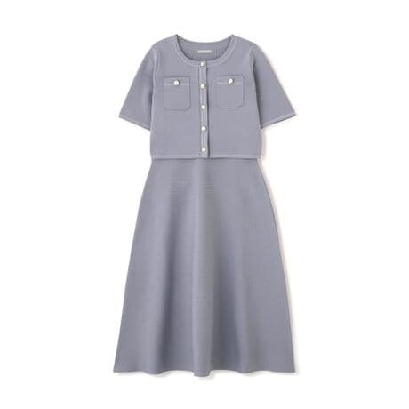 ドライタッチで軽くしっかりとしたポリエステル素材を使用した、半袖ニットジャケットとノースリーブワンピースのSETUP。ワンピースはキレイなフレアシルエットが魅力で、キレイめデザインのためオフィスシーンにもお勧めです。単品使いもできるのでコーディネートの幅が広がります。※撮影時照明の関係により、色味が違って見える場合がございます。またパソコン・スマートフォンなどの環境により、若干製品と画像のカラーが異なる場合もございます。予めご了承ください。商品の色味は、商品単品画像をご参照下さい。※商品画像はサンプルのため、色味やサイズ等の仕様に変更がある場合がございますので、予めご了承ください。