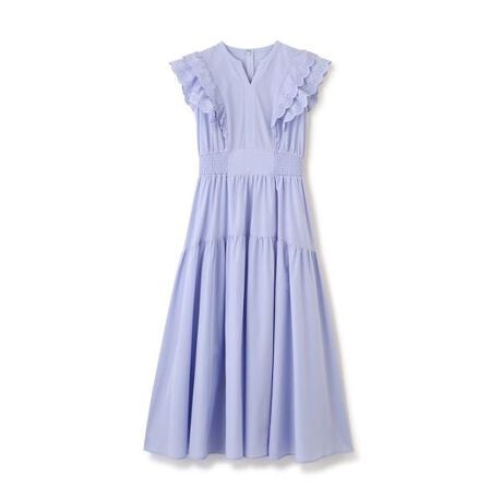 春夏トレンドのカットワーク袖フリルをあしらったワンピース。綿タッチのさらっとした肌離れのよい素材を使用しています。後ろファスナーと後ろウエストシャーリングで、すっきりとしたシルエットを演出。ボリュームを出したスカートが華やかな主役級アイテムです。※撮影時照明の関係により、色味が違って見える場合がございます。またパソコン・スマートフォンなどの環境により、若干製品と画像のカラーが異なる場合もございます。予めご了承ください。商品の色味は、商品単品画像をご参照下さい。※商品画像はサンプルのため、色味やサイズ等の仕様に変更がある場合がございますので、予めご了承ください。