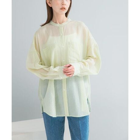 程よいシアー感と軽やかなストライプ柄が魅力のオーバーシャツ。ナチュラルなシワ感が特徴で、お手入れも簡単ながら、着るだけでこなれたムードを演出します。リラックス感のあるオーバーサイズは、体型カバーをしつつ、さらっと羽織るだけで決まるシルエット。袖の切り替えやカフスのデザインで着こなしのアクセントになっています。