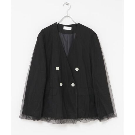 リネンライクな素材のノーカラージャケットに、ふわりとチュールを重ねた春のはじまりにぴったりな一着。チュールにはボリュームを持たせてバルーン風に仕上げ、シアー感が動くたびに表情を変えるデザイン。ベーシックなダブルジャケット型なので、きちんと感もキープ。いつものコーデに羽織るだけで、軽やかさとモード感をプラスしてくれる。甘さも洒落感も、どちらも欲しい大人にこそ着てほしい、春ジャケットです。