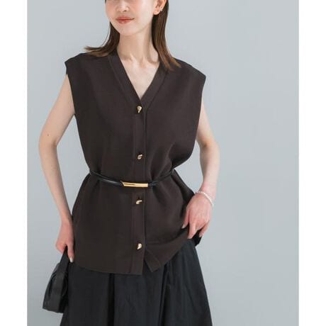・金属ボタンがアクセントになり、トップスにもジレにも活躍