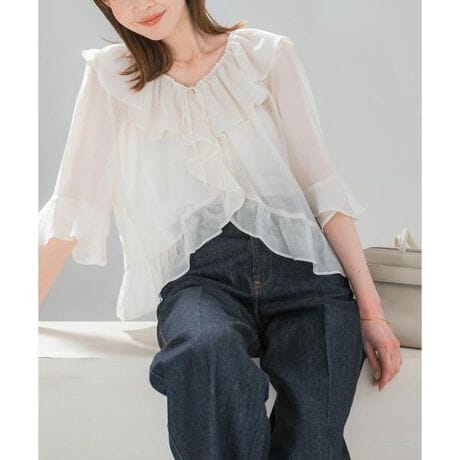 【軽やかに華やぐシアーフリルブラウス】
