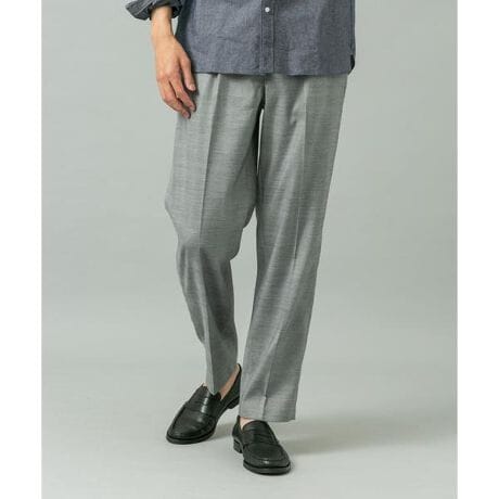 ウエストからヒップ、もも周りにかけては1タックを入れることで程よくゆとりを持たせ、膝下に向かって自然に細くなる美しいテーパードシルエットを設計。