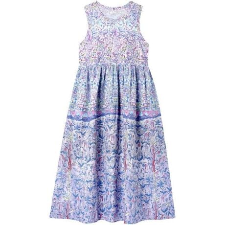 ・胸の切り替えより上は、やわらかな肌ざわりのベア天竺素材、下は凹凸があるリップル加工で、肌ばなれがよい綿100%ローン素材を使用・パッド受けは、綿100%素材を使用・森の中でグランピングを楽しんでいるたくさんのネコや動物、前に広がる花畑で鳥たちが楽しそうにおしゃべりをしている様子を表現した柄・一枚でさらっと着られるパッド入りワンピースは、リゾートにもおすすめ・パッド受けあり/パッドあり( パッドは取りはずし可能 )※お洗濯は、必ず「取扱い表示」にしたがってください。