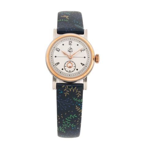 しっとりとした手触りのホーウィン(HORWEEN)レザーに、シックなカラートーンのボタニカル柄をプリントしたアンティーク調腕時計。