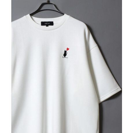 ANPAS Ponte Fabric CAT & HEART Embroidery Oversized T-Shirt/ANPAS 別注 ポンチ 猫ハート 刺繍 接触冷感 オーバーサイズ 半袖Tシャツ メンズ レディース