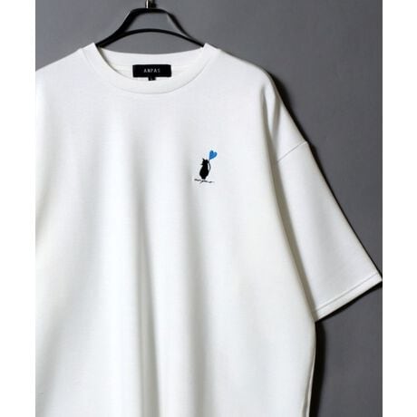 ANPAS Ponte Fabric CAT & HEART Embroidery Oversized T-Shirt/ANPAS 別注 ポンチ 猫ハート 刺繍 接触冷感 オーバーサイズ 半袖Tシャツ メンズ レディース