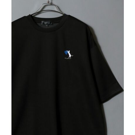 ANPAS Ponte Fabric CAT & HEART Embroidery Oversized T-Shirt/ANPAS 別注 ポンチ 猫ハート 刺繍 接触冷感 オーバーサイズ 半袖Tシャツ メンズ レディース