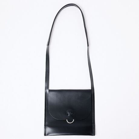 一枚の革を折りたたんだ本体にホワイトステッチとリングがアクセントとして施されています。