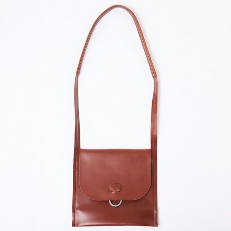 一枚の革を折りたたんだ本体にホワイトステッチとリングがアクセントとして施されています。
