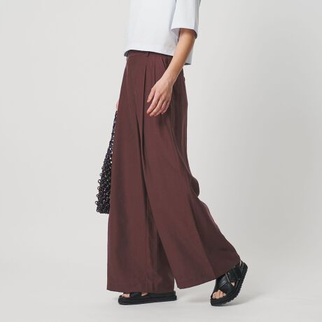 ウエストディテールをシンプルに仕上げたワイドパンツ。