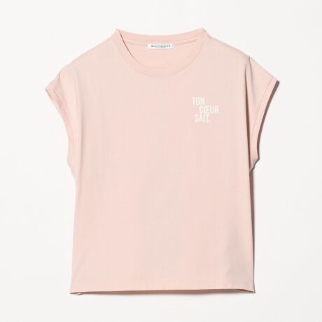品よくアクセントを添えるロゴフレンチスリーブTシャツ