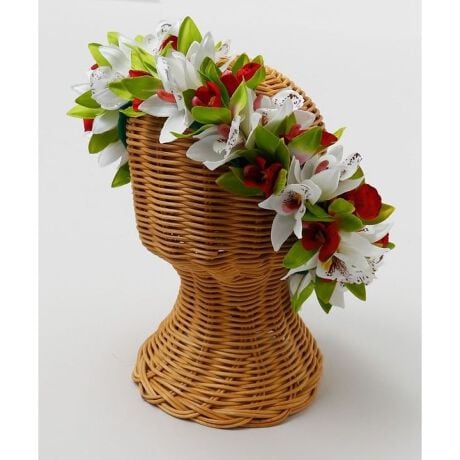 [型番:YCYZ6101-2026]色とりどりのオーキッドを繊細にあしらった華やかなハクレイ。サイズ調整が可能で頭まわりにしっかりとフィットし、踊りの動きにもずれにくい仕様。フラの装いを華やかに仕上げる、存在感あるステージアクセサリーです。サイズ調整可能