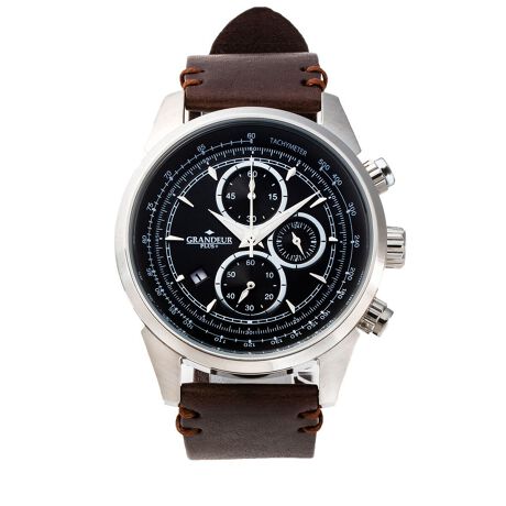 腕時計 メンズ 男性用 GRANDEUR PLUS クロノグラフ イタリア製レザー GRP001W3