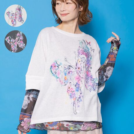 マルイウェブチャネル   /   トップス   /   Tシャツ・カットソー   /   ScoLar スカラー 水彩タッチ花蝶プリントTシャツ