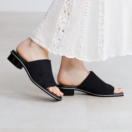 さっと履けて、包み込むように肌に寄り添うストレッチ素材が甲をしっかりとホールドし、快適な履き心地を叶えるミュールサンダル。