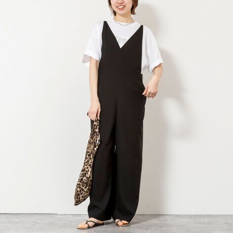 ・サラッとしたドライタッチが心地よい、多機能素材を使用したサロペットパンツ
