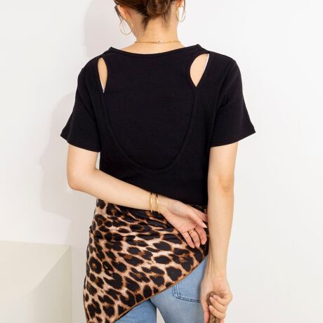 ・タンクトップと重ね着したようなバッグデザインのトップス