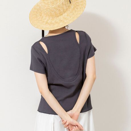 ウォッシャブルバックデザインリブTシャツ