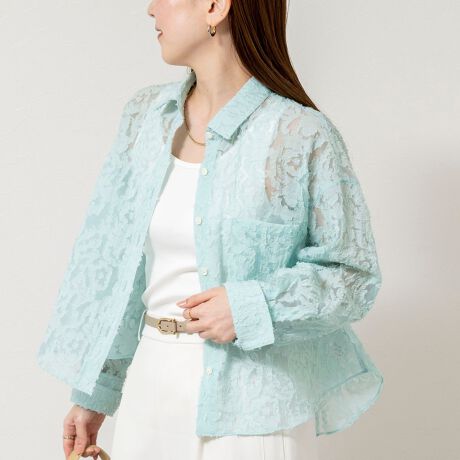 ウォッシャブルワッシャーオーガンジーカットジャガードショートシャツ