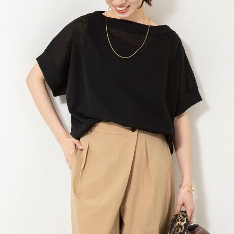 ・ゆったりとしたドルマンスリーブに、やや広めのボートネックを合わせた抜け感のあるデザイン