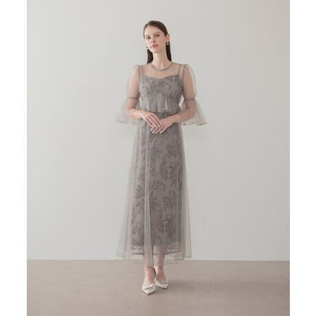 繊細なシアーワンピースと、贅沢なフラワースパンコール刺繍を施したキャミソールドレスの2点セット。