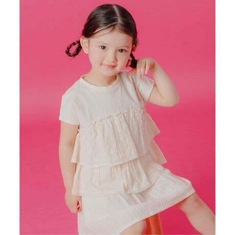 Boribon(ボリボン)の半袖Tシャツ「ドッキングラッフルフレンチスリーブ」は、ナチュラルで華やかさもあるデザインが魅力のアイテム。